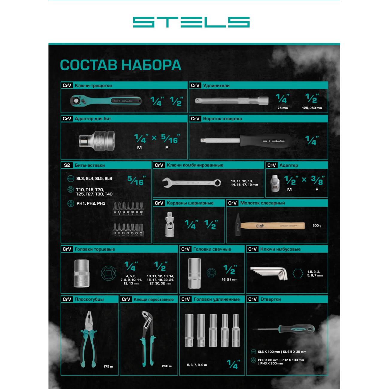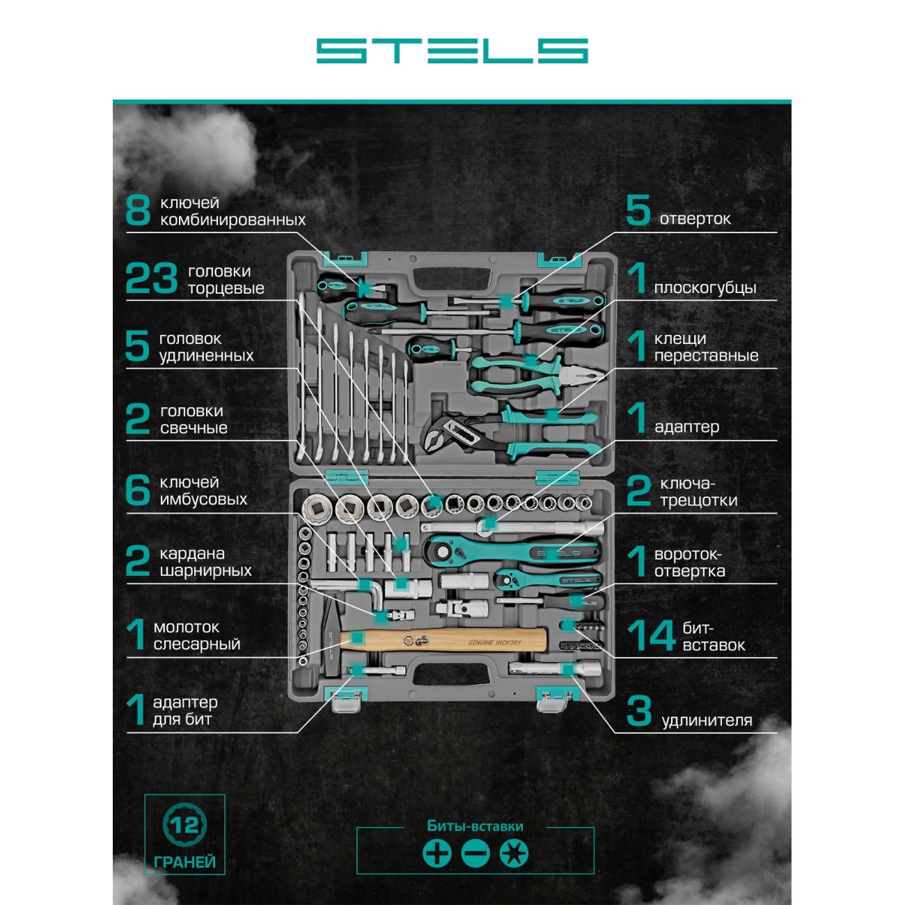 Вы можете купить Набор инструментов Stels 76 пр. (14116) в магазинах М.Видео по доступной цене. Набор инструментов Stels 76 пр. (14116): подробное описание, фото и отзывы реальных покупателей, характеристики, возможность скачать инструкции и подобрать аксессуары.