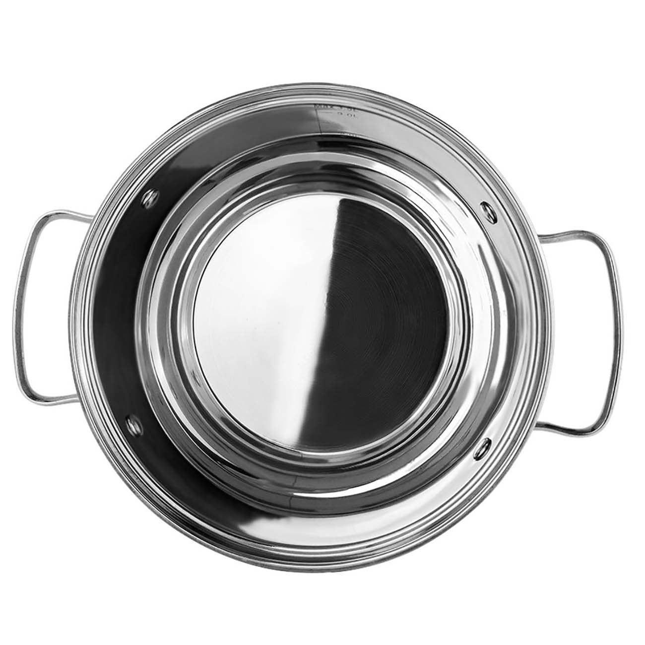 В комплект входят кастрюли на 2,8 л, 5 л и 6,5 л, а также три крышки, сделанные из жаропрочного стекла. Есть небольшие отверстия для выхода пара. Разрешено мыть под проточной водой, а также в посудомоечной машине с использованием специальных чистящих средств.