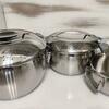 Кастрюльки очень понравились.Пришли хорошо упакованные, без повреждений.После первого использования ничего плохого не случилось.Ручки нагреваются, но незначительно, обошлась без прихваток, сливать воду удобно, ручки хорошо поднимаются и опускаются.С металлом после первой варки ничего не произошло.Кастрюльки тяжеленькие и очень эстетичные. Мне понравились, надеюсь прослужат долго.Спасибо за качественный товар!