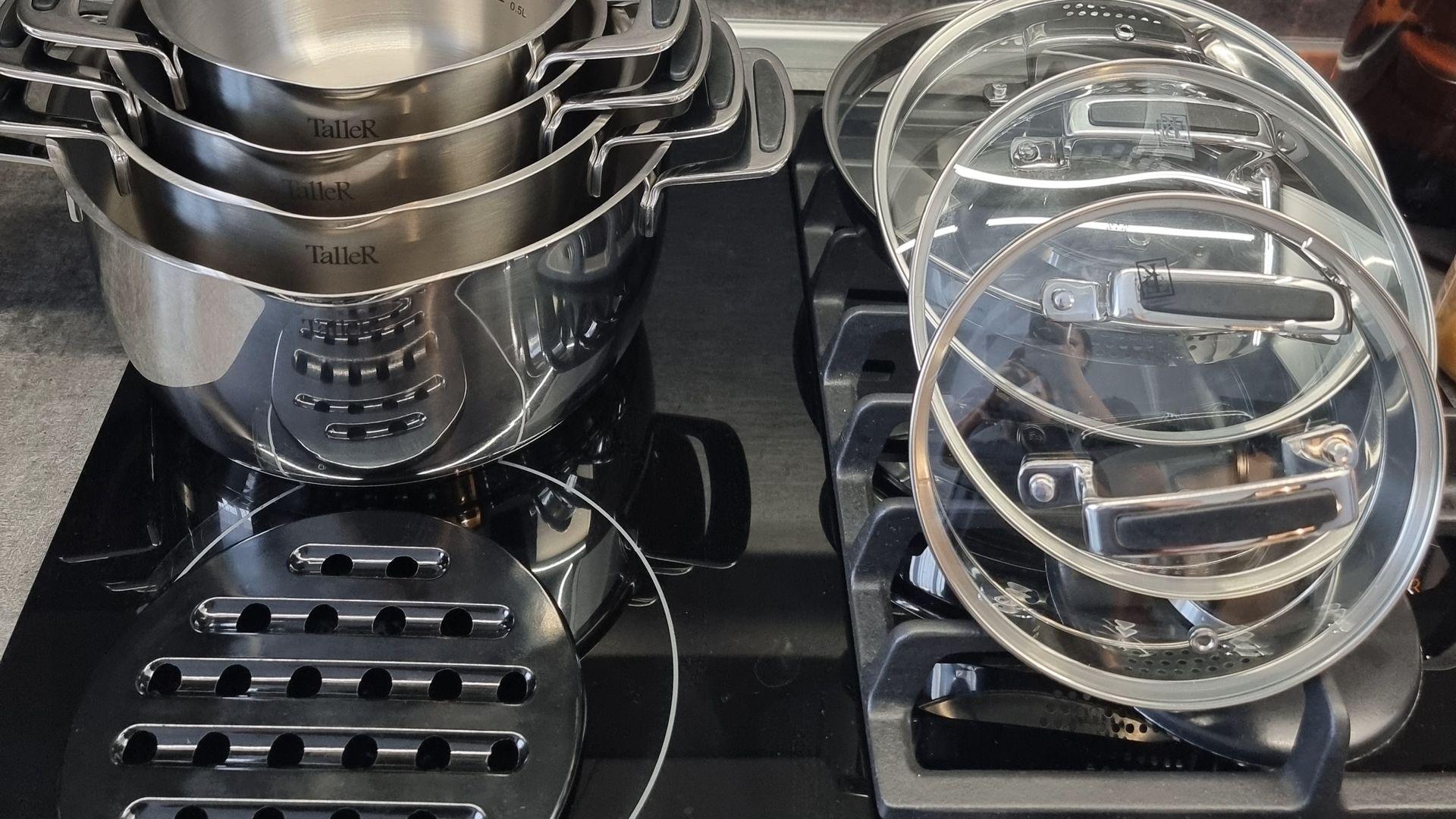 прочные, красивые, быстро и равномерно нагреваются на индукционной плите, отлично моется в посудомоечной машине