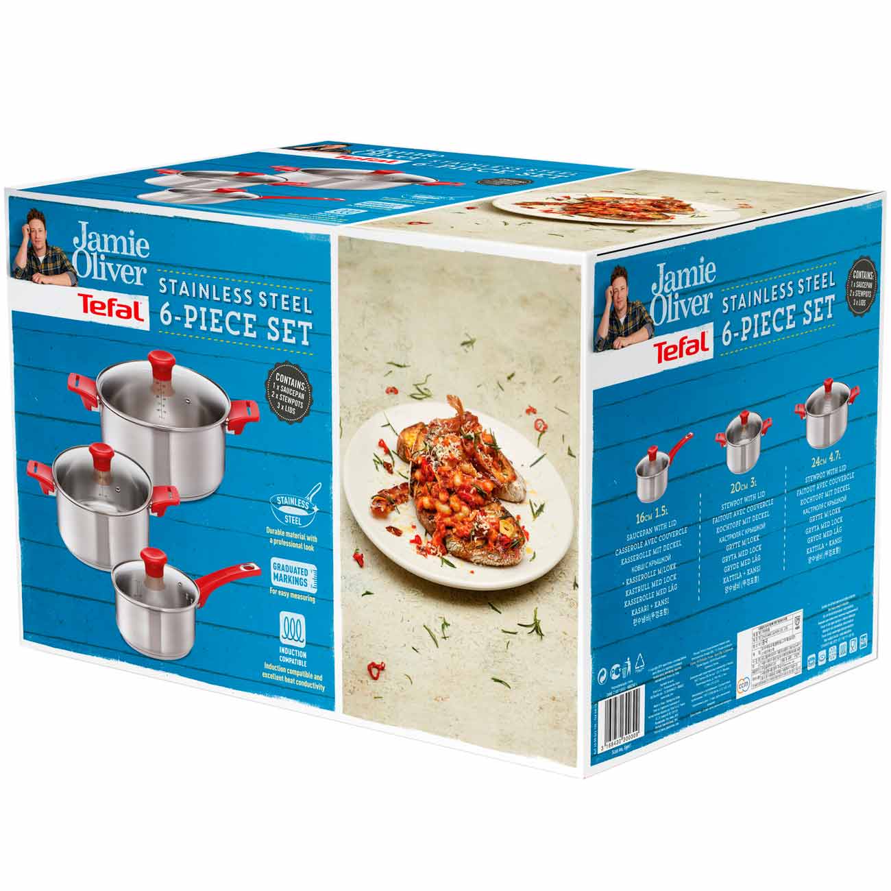 Ковш (1,5 л) и две кастрюли (3 и 4,7 л) – набор Tefal Jamie Oliver обеспечит вас полезной кухонной утварью, которая у большинства людей «в ходу» каждый день. В этой посуде можно готовить на конфорках любых типов, в том числе индукционных.