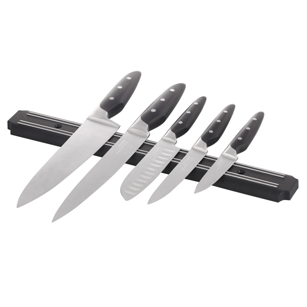 Очень понравился принцип хранения ножей, висит на стене, не занимает лишнего места на столе подставка, удобно брать и вешать ножи, видишь, какой нож берешь ( в отличие от непрозрачных деревянных подставок), стильно смотрится, магнит достаточно сильный, выдерживает вес тяжелых ножей, но... От такого бренда ожидала большего качества: через месяц использования магнитные полосы отклеялись и стали вытаскиваться из пластмассовой основы вместе с ножом, прибегла к помощи клея Момент, надолго ли хватит - не знаю, т.к. опять чувствуется подвижность магнитов (отрываю и примагничиваю ножи часто). Ножи тупятся быстро, хотя в посудомойке не мою, кости не режу, пивные бутылки ими не открываю, доска деревянная. Вечного конечно же ничего нет, но и не сроком в месяц.