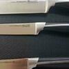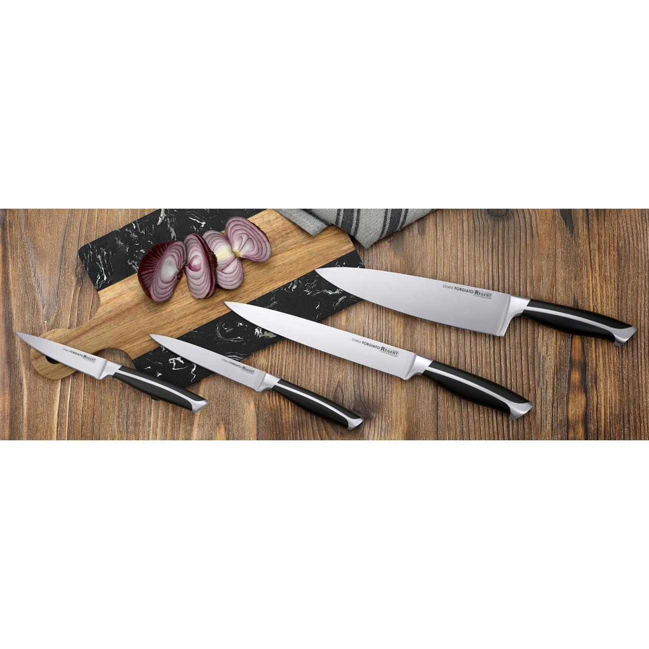 Ножи цельнокованые, есть больстер, достаточно увесистые и с хорошим балансом, отличная, крепкая, удобная ручка. В наборе самые ходовые ножи для кухни. Заточку держат нормально, подвожу раз в месяц на двойной ножеточке. Пришли в пакете, а каждый в индивидуальной упаковке. Ножи не ржавеют, но их обязательно нужно вытирать насухо прежде чем убрать. Заказывал на сайте М.Видео, пришло во время, забрал из магазина рядом с домом. Считаю, что за эти деньги достаточно хороший набор.