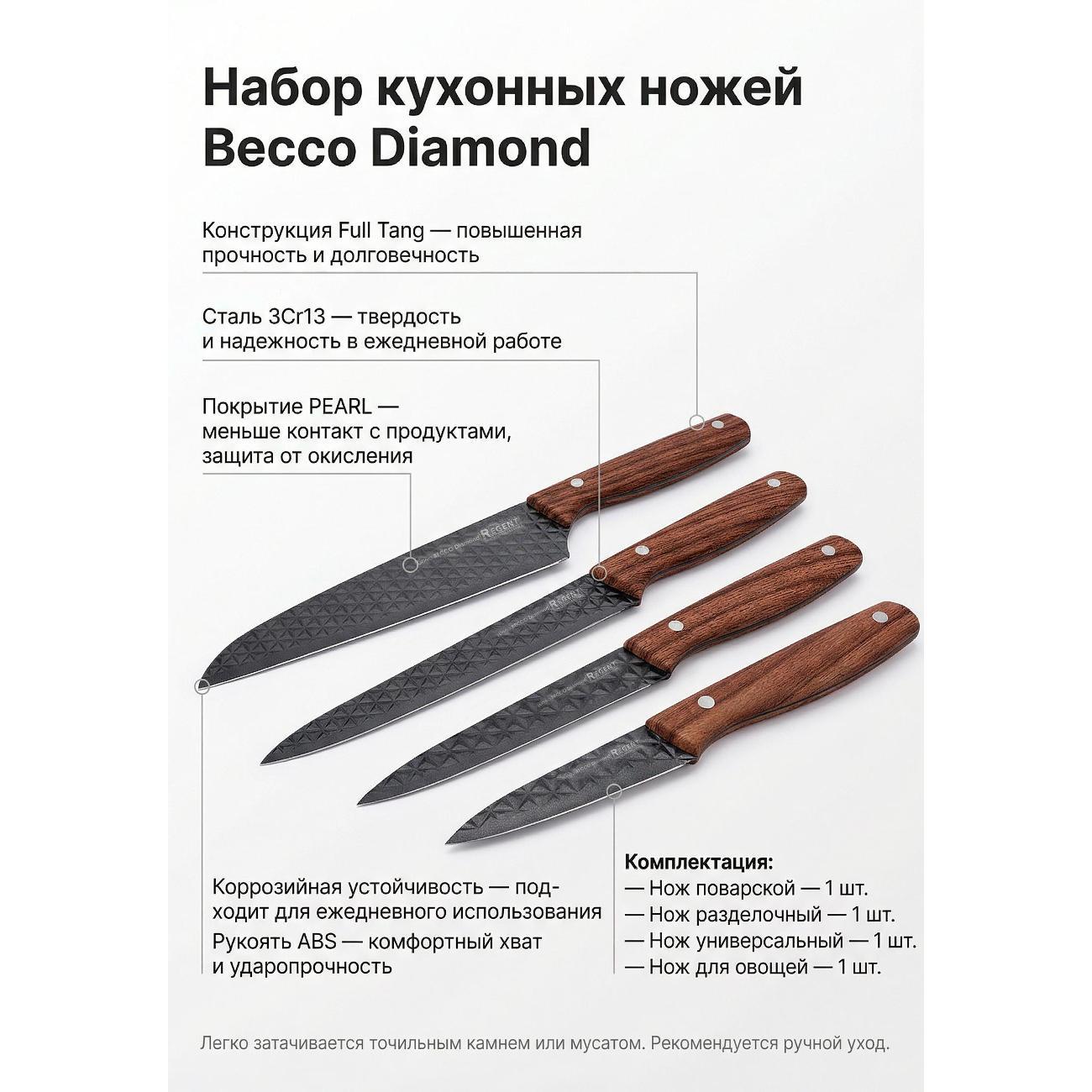 Вы можете купить Набор ножей REGENT inox Dimond в магазинах М.Видео по доступной цене. Набор ножей REGENT inox Dimond: подробное описание, фото и отзывы реальных покупателей, характеристики, возможность скачать инструкции и подобрать аксессуары.