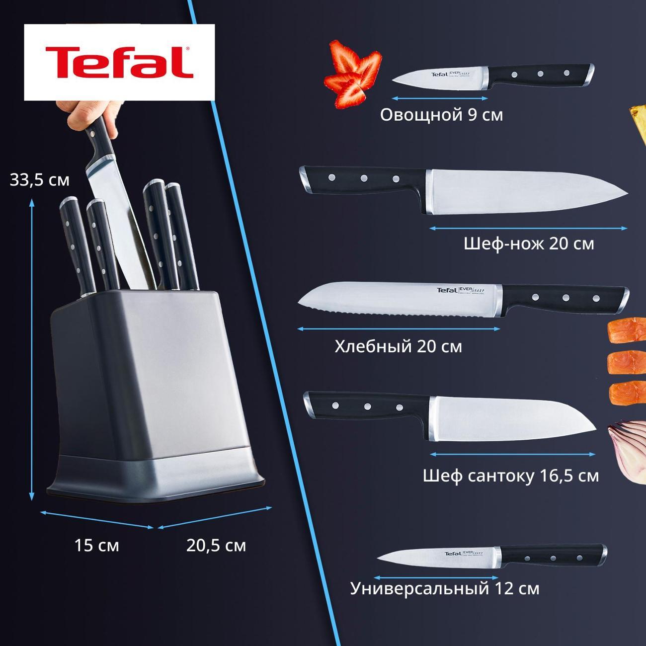 Вы можете купить Набор ножей Tefal EverSharp Pro и блок для хранения со встроенной точилкой, 5 предметов, K297S644 в магазинах М.Видео по доступной цене. Набор ножей Tefal EverSharp Pro и блок для хранения со встроенной точилкой, 5 предметов, K297S644: подробное описание, фото и отзывы реальных покупателей, характеристики, возможность скачать инструкции и подобрать аксессуары.