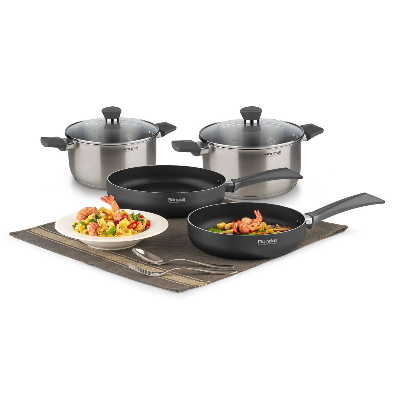 Rondell RDS-1507 набор, в состав которого входят две кастрюли с крышками и две сковороды. Они позволяют готовить пищу разными способами – варить и жарить, тушить и томить.