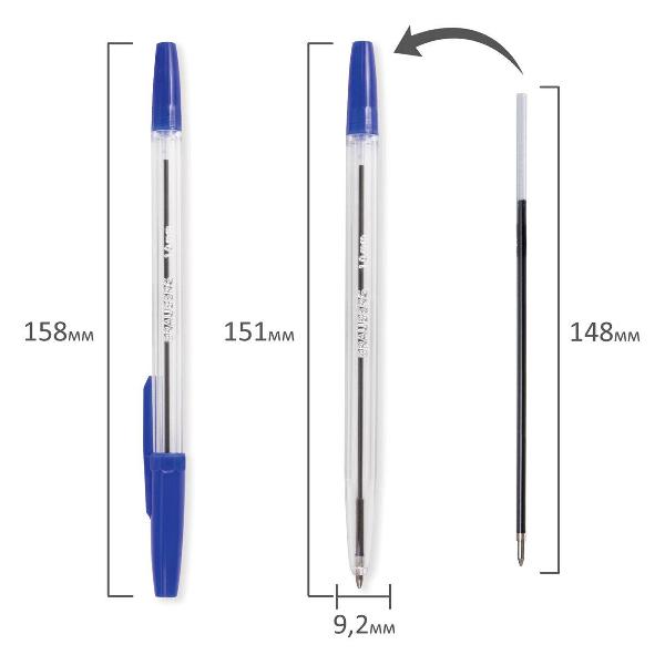 Ручки обладают увеличенной длиной письма, что обеспечивает более длительный срок службы по сравнению с другими ручками. Корпус ручки прозрачный с синими деталями. Длина стержня составляет 148 мм, заправлен немецкими чернилами на масляной основе DOKUMENTAL синего цвета. Диаметр пишущего узла, равный 1 мм, создает среднюю по толщине линию письма, равную 0,5 мм.