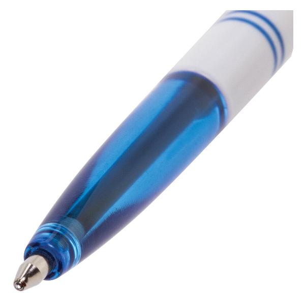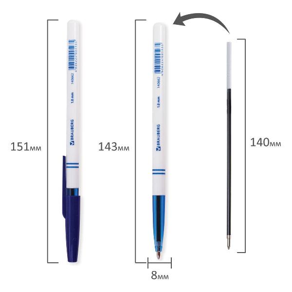 Обладает увеличенной длиной письма, что обеспечивает более длительный срок службы по сравнению с другими ручками. Еще одним преимуществом данной модели является наличие сменного стержня, что делает ее экономически привлекательной для организаций с большим документооборотом. Длина стержня составляет 140 мм. Диаметр пишущего узла, равный 1 мм, создает среднюю по толщине линию письма, равную 0,5 мм. Белый цвет корпуса с синими деталями соответствует офисному стилю. Поставляются в картонной коробке в количестве 24 штук.
