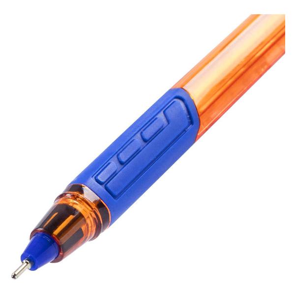 Шариковая ручка с трехгранным тонированным корпусом и резиновым грипом для удобства письма, исключающим скольжение пальцев. Заправлена чернилами ультрапониженной вязкости и обеспечивает мягкое и комфортное письмо. Надежный пишущий узел диаметром 0,7 мм создает тонкую линию равную 0,35 мм. Цвет чернил - синий. Стильный корпус соответствует офисному стилю.