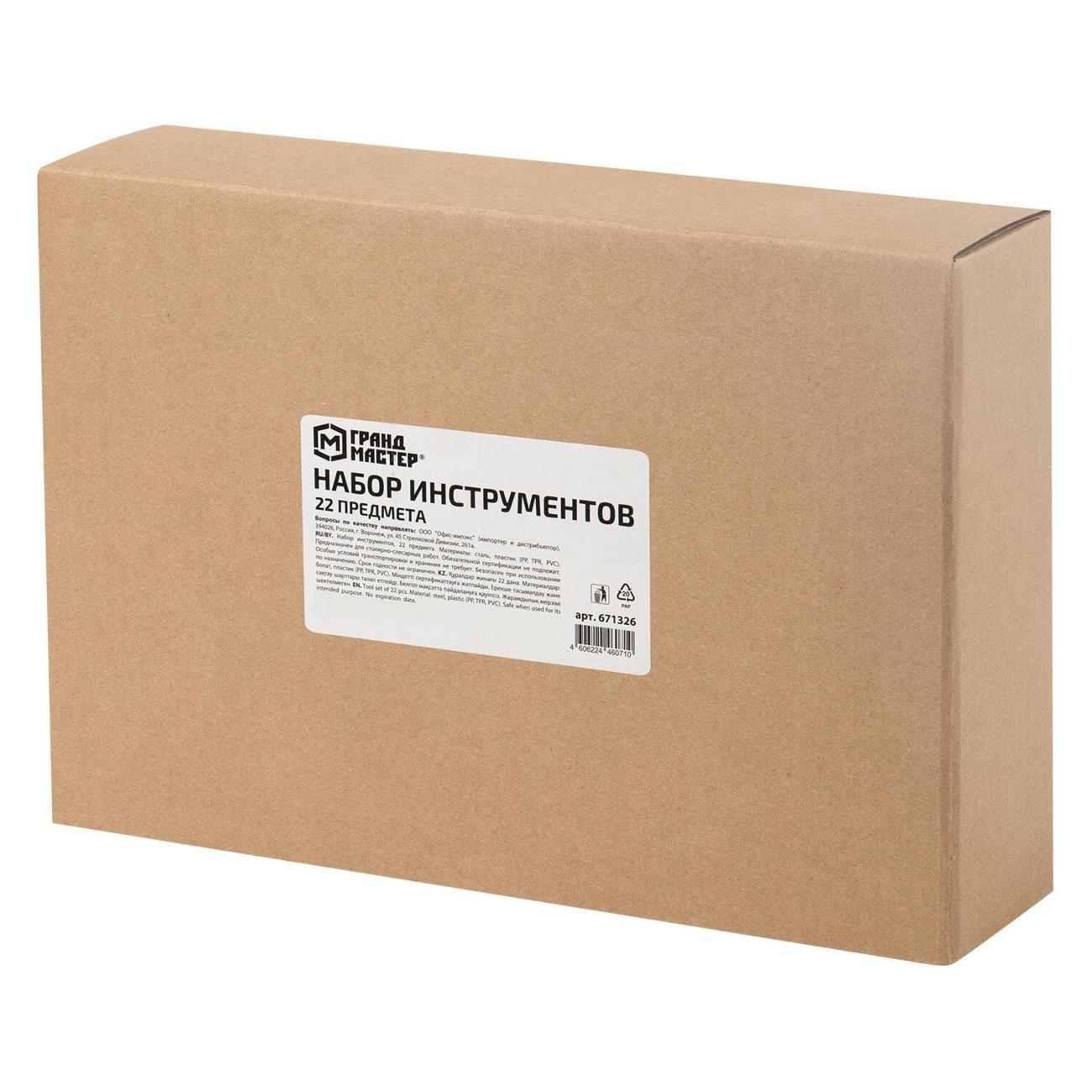 Все инструменты располагаются в компактном пластиковом боксе с полупрозрачной крышкой. Для каждого предмета в наборе предусмотрено специальное углубление для удобства хранения.