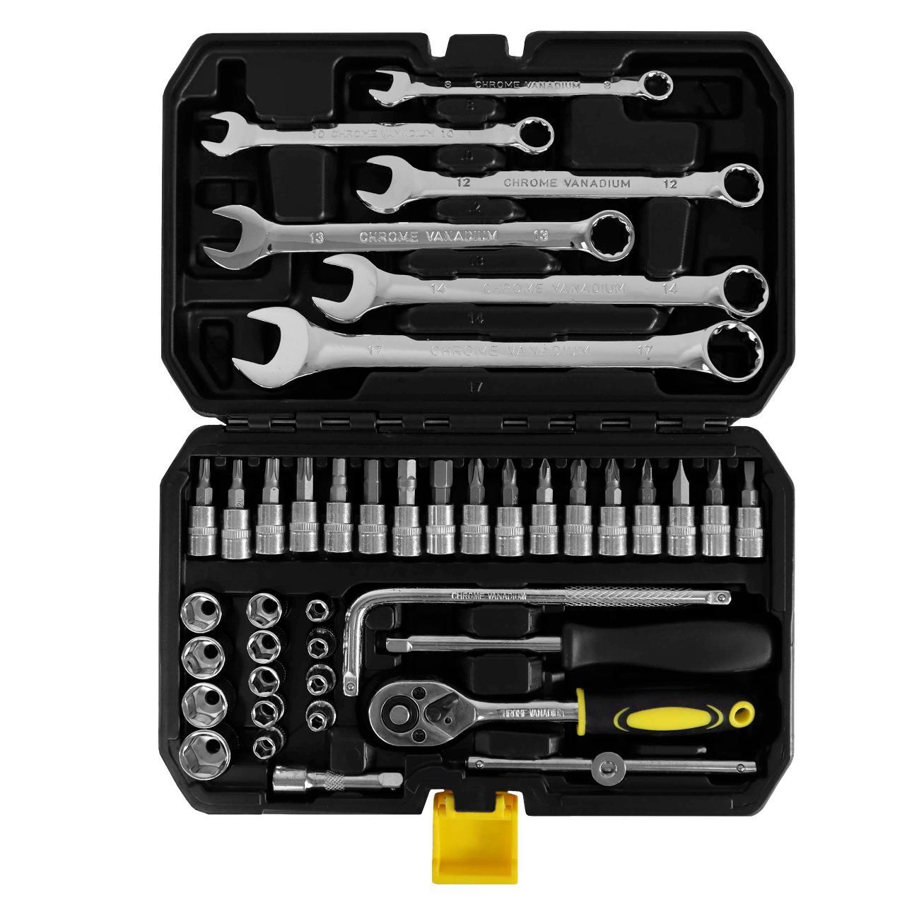 Набор понравился, металл тяжеленький, трещетка работает как надо. На ключах как будто то бы напыл хрома, скорее всего облупится. Но я планирую использовать дома щадящем режиме. Для гаража есть большой набор. По акции купил за 800+ рублей. За эту цену очень доволен покупкой.