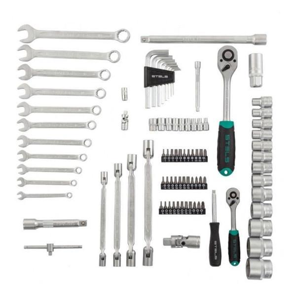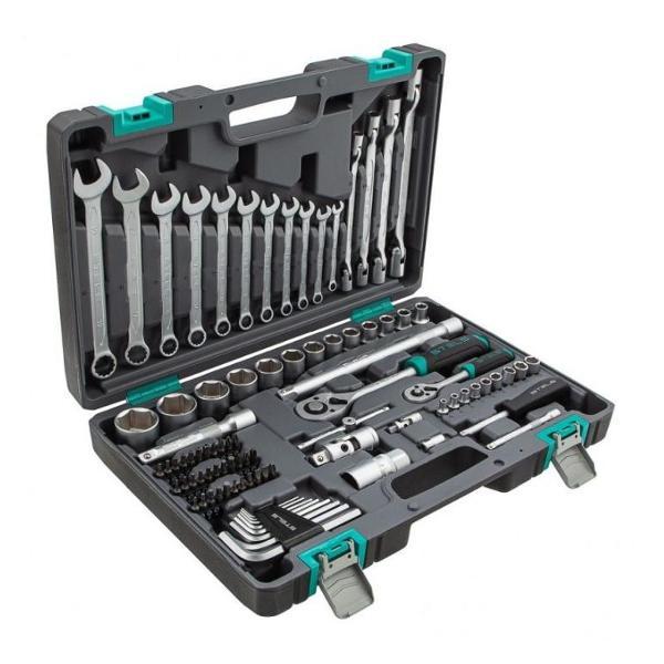 КомплектацияУдлинитель - 3, Переходник для бит - 1, Отвертка-держатель - 1, Ключи шарнирные 8х9, 10х11, 12х13, 14х15мм - 4 шт., Ключи комбинированные 6, 7, 8, 9, 10, 11, 12, 13, 14, 17, 19мм - 11 шт., Ключи имбусовые 2, 2.5, 3, 4, 5, 6, 8, 10мм - 8 шт, Ключ трещоточный - 2 шт, Кардан - 2, Головки свечные - 1, Головки 4, 5, 6, 7, 8, 9, 10, 11, 12, 13, 14, 15, 17, 19, 22, 24, 27, 30, 32мм - 22 шт, Вороток Т-образный - 1, Биты-вставки T, TT, SL, H, PZ, PH - 33 шт.