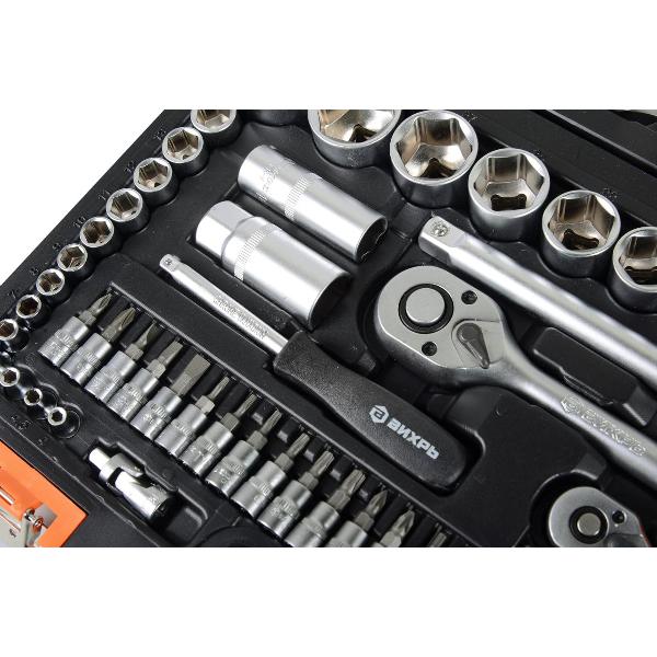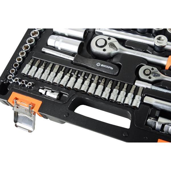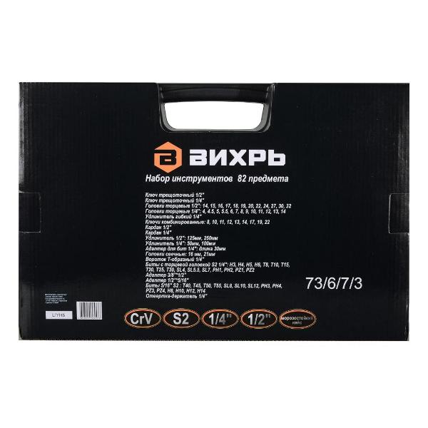 Набор ручного инструмента «Вихрь» 73/6/7/3 состоит из 82 предметов. Набор подходит для бытовых нужд — монтажных работ в доме и на даче, ремонта машины, садовой техники и т.д.