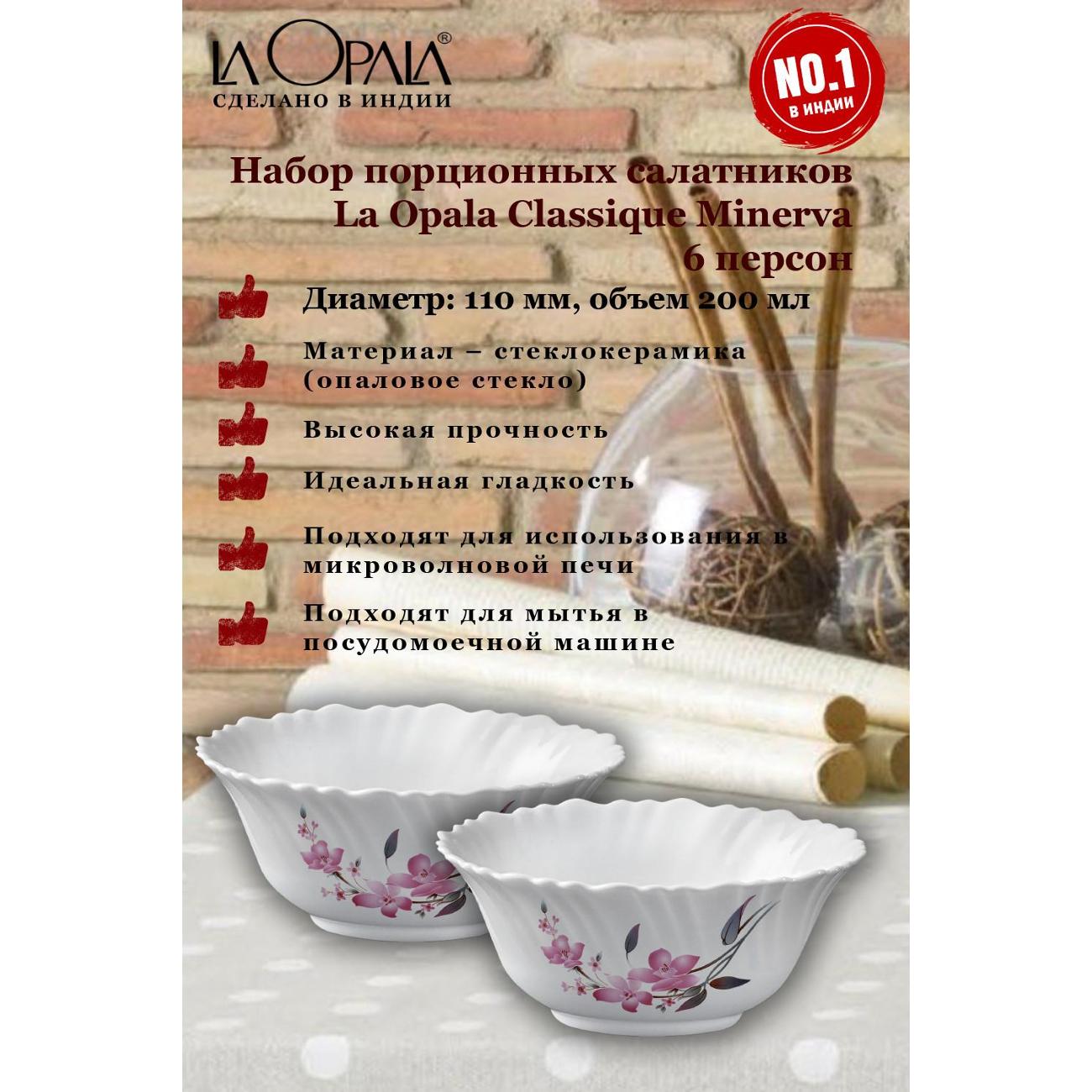 Вы можете купить Набор салатников LA OPALA Classique Minerva 110мм 6шт в магазинах М.Видео по доступной цене. Набор салатников LA OPALA Classique Minerva 110мм 6шт: подробное описание, фото и отзывы реальных покупателей, характеристики, возможность скачать инструкции и подобрать аксессуары.