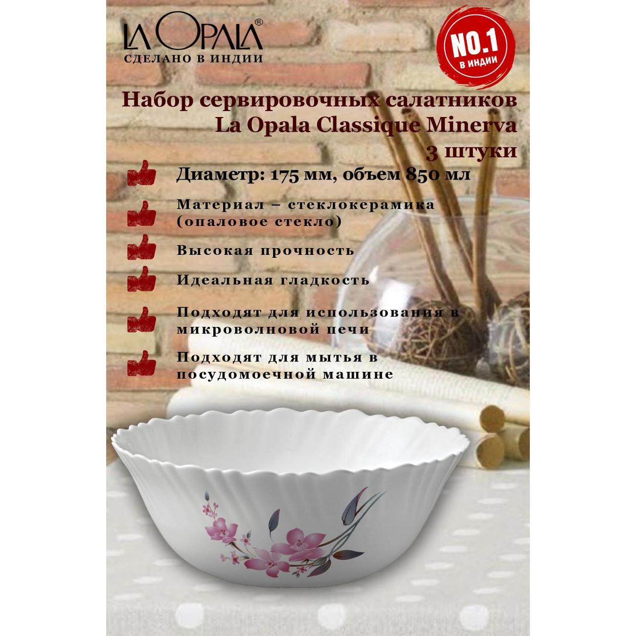 Вы можете купить Набор салатников LA OPALA Classique, Minerva, 175 мм, 3 шт в магазинах М.Видео по доступной цене. Набор салатников LA OPALA Classique, Minerva, 175 мм, 3 шт: подробное описание, фото и отзывы реальных покупателей, характеристики, возможность скачать инструкции и подобрать аксессуары.
