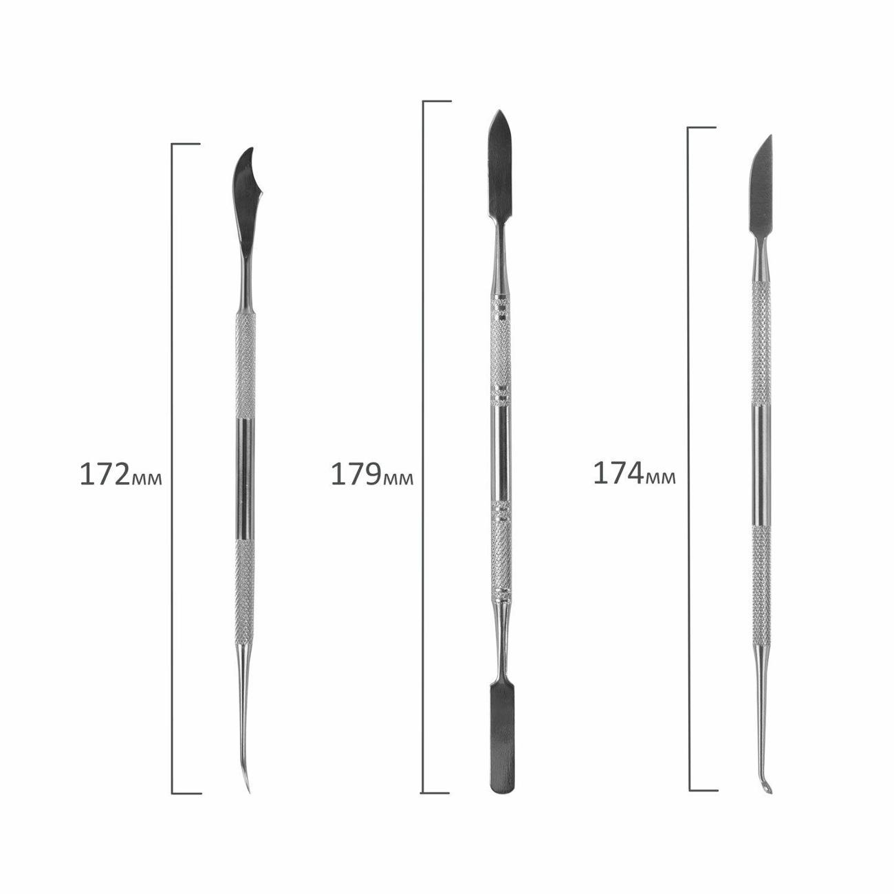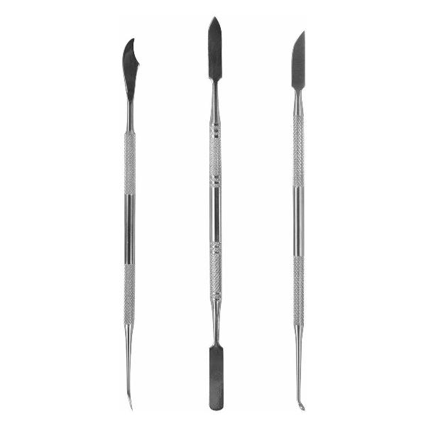 3 стека из нержавеющей стали различной формы. Прочные, тяжелые инструменты с разными формами наконечников необходимы при проработке мелких деталей, для моделирования выпуклостей.