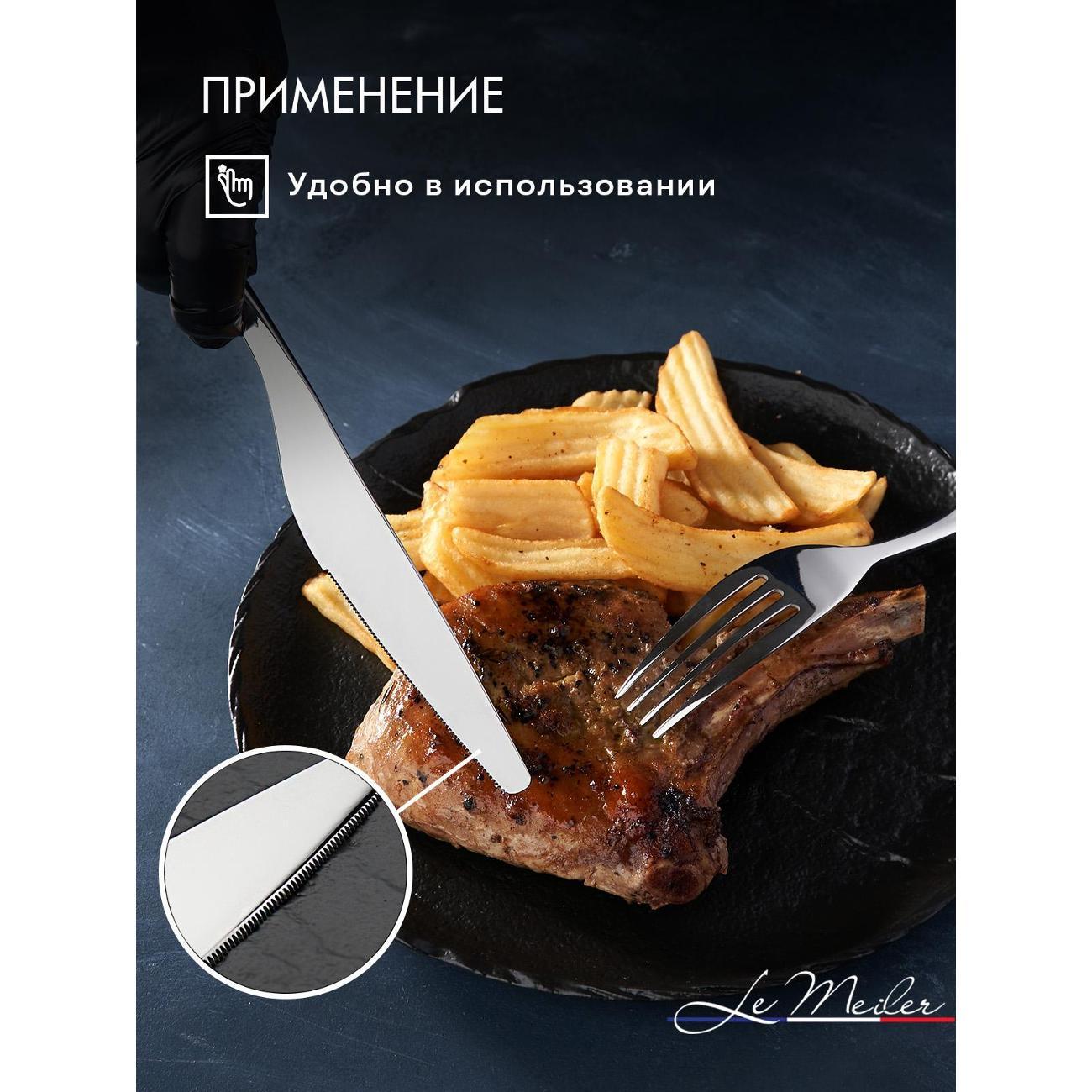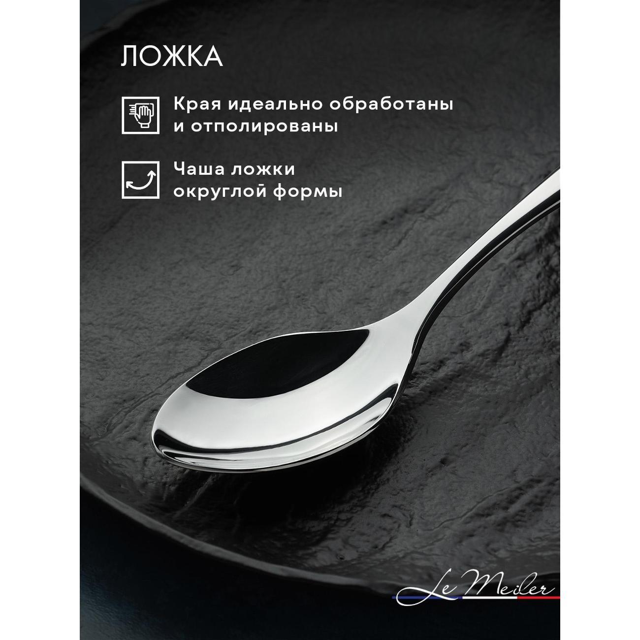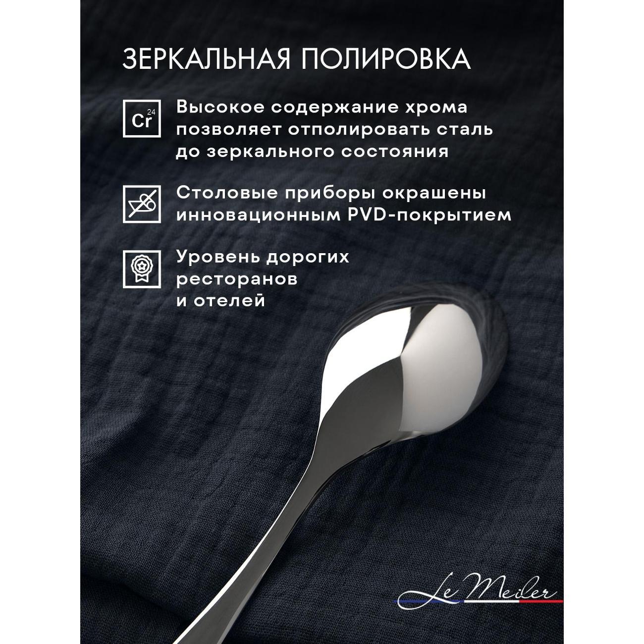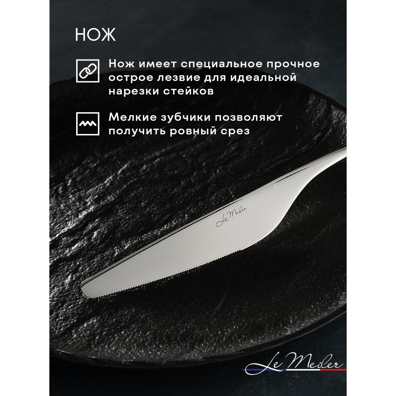 Современный и стильный набор серебристых столовых приборов из гипоаллергенной нержавеющей стали 18/10 на шесть персон (24 предмета) Le Meiler FS-420. Столовые приборы из нержавеющей стали подойдут как для личного пользования, так и в подарок на любой праздник.
