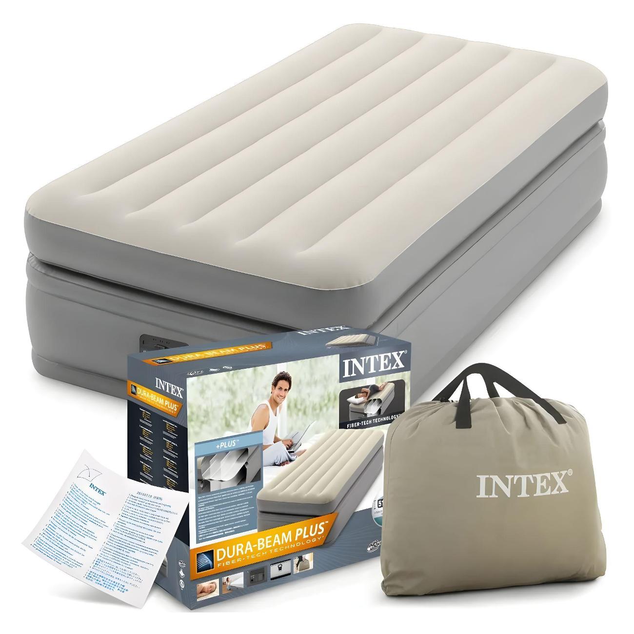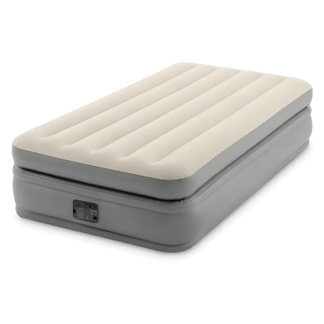 Односпальная надувная кровать Intex 64162 белого цвета поставляется со встроенным электрическим насосом с внешним клапаном. Мощность насоса составляет 90 Вт, питается от электросети. Его производительность достигает 450 литров воздуха в минуту. Время накачивания матраса занимает 3 минуты.