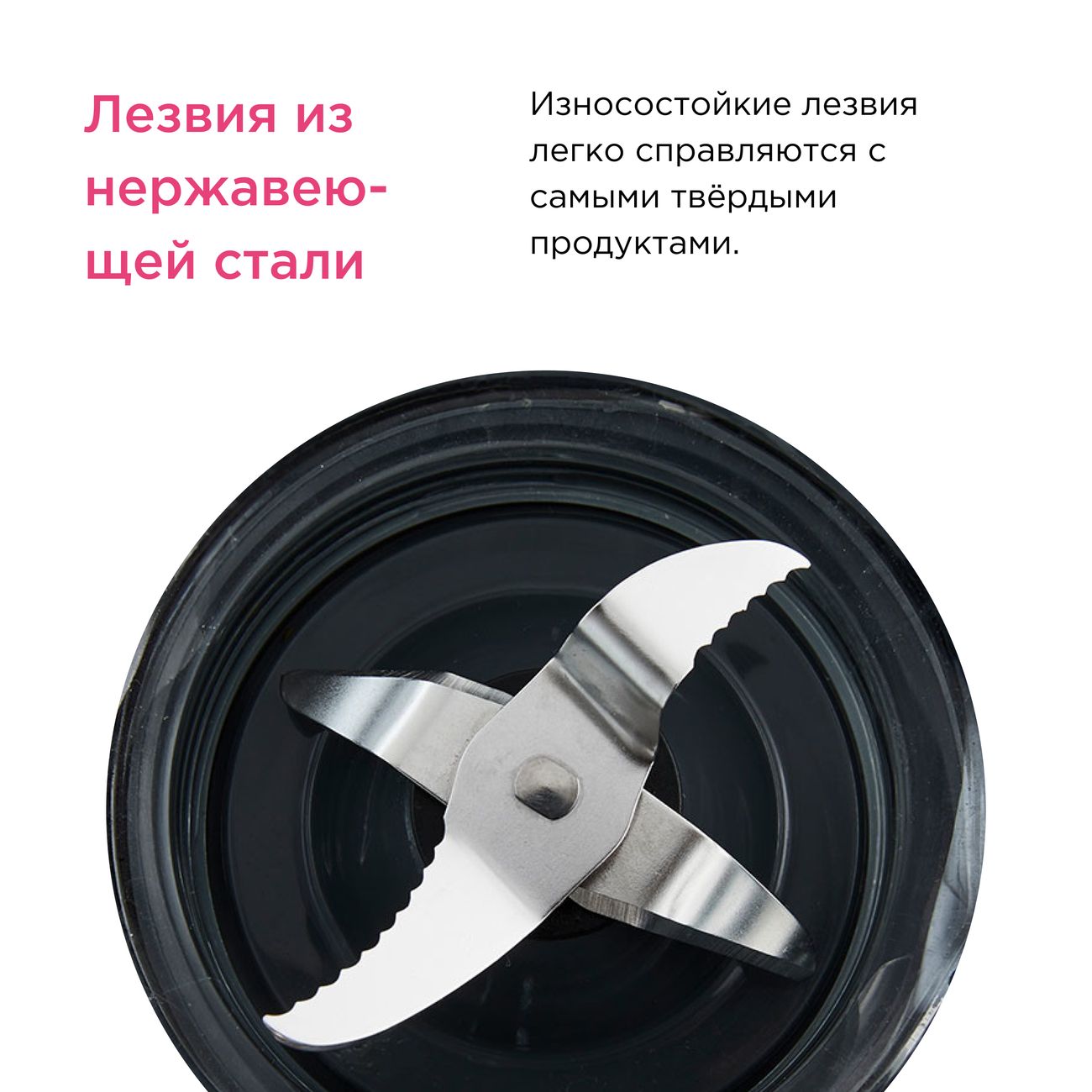 Лезвия сделаны из нержавеющей стали высокого качества. Они эффективно справляются даже с твёрдыми ингредиентами и хорошо держат заточку. Им не страшна коррозия и воздействие фруктовых кислот.