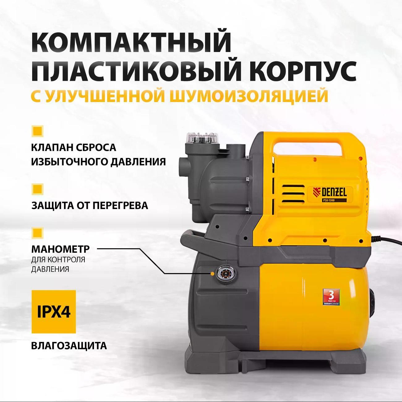 Вы можете купить Насосная станция DENZEL PSХ1300 в магазинах М.Видео по доступной цене. Насосная станция DENZEL PSХ1300: подробное описание, фото и отзывы реальных покупателей, характеристики, возможность скачать инструкции и подобрать аксессуары.
