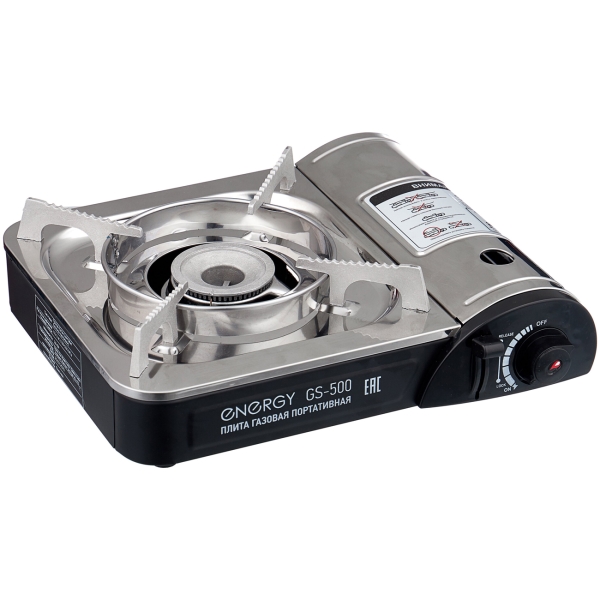 Настольная газовая плита Energy GS-500 146005 с одной конфоркой 2,8 кВт — компактное устройство для приготовления пищи и кипячения воды на живом огне. Система управления — механическая, поворотный переключатель удобно расположен на передней панели. Корпус и варочная поверхность серебристого цвета изготовлены из нержавеющей стали. Предусмотрена металлическая решетка. Размеры — 8,5х34,3х27,5 см, вес — 2,11 кг.