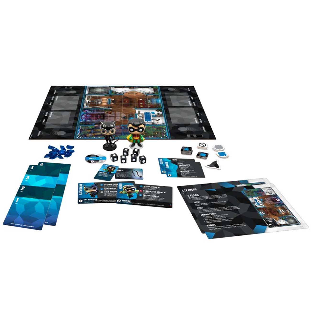 Каждый выпуск является полноценной и самостоятельной игрой, но никто не запрещает комбинировать наборы. В комплект входят эксклюзивные игрушки от Funko, двустороннее поле, кубики, различные карты и жетоны. Funkoverse: DC Comics 101 Expandalone – самостоятельное дополнение с фигурками Женщины-кошки и Робина, локациями «Лечебница Аркхэм» и «Пентхаус Женщины-кошки». Оно может использоваться для игры вдвоём или в связке с другими частями серии.