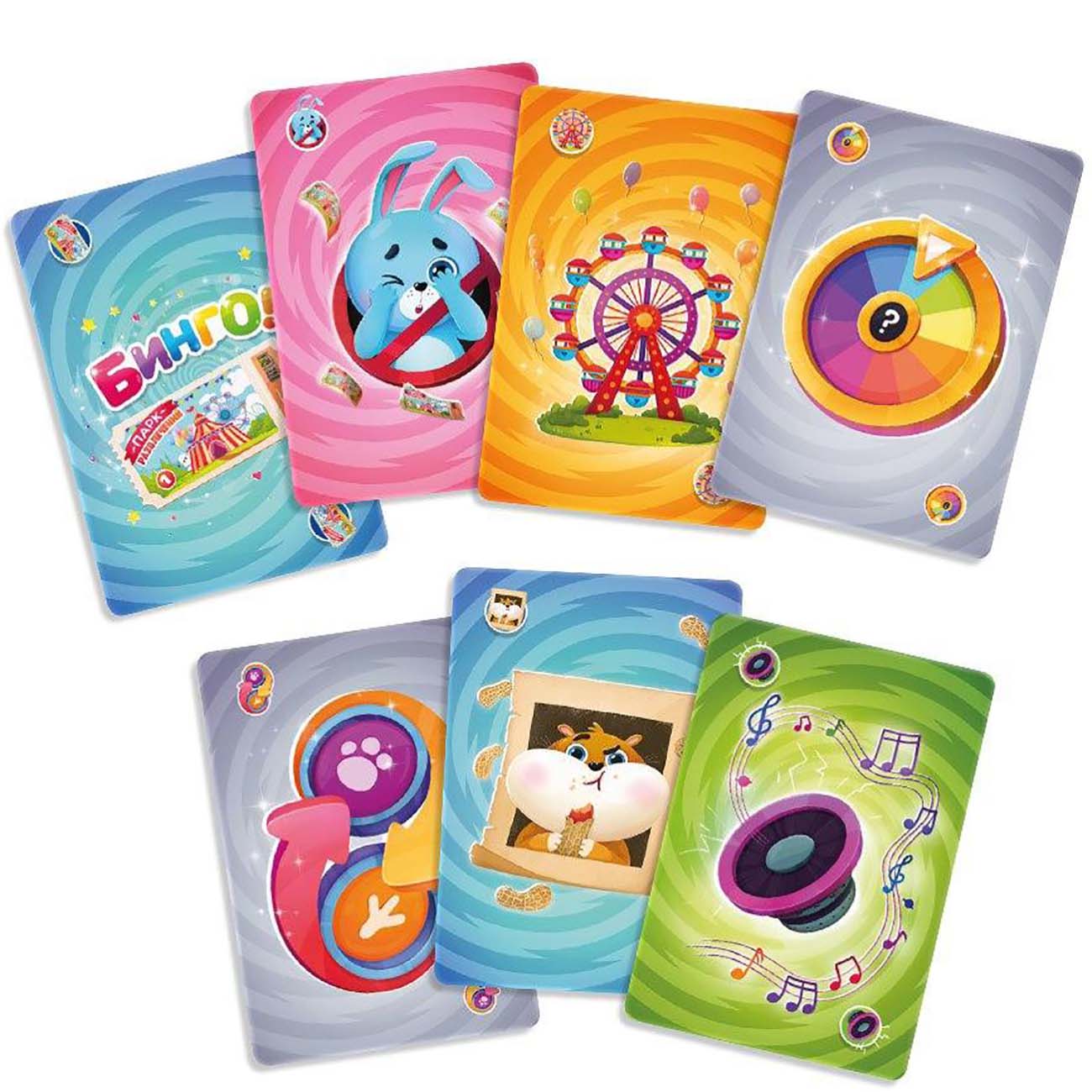 Участникам раздаются карточки на руки – игрокам нужно как можно быстрее избавиться от них, следуя правилам. Выкладывай их таким образом, чтобы совпадали картинки или цвет, но на этом сюрпризы не кончаются. Благодаря особенностям «Карусели» ты можешь запросто приблизить победу.