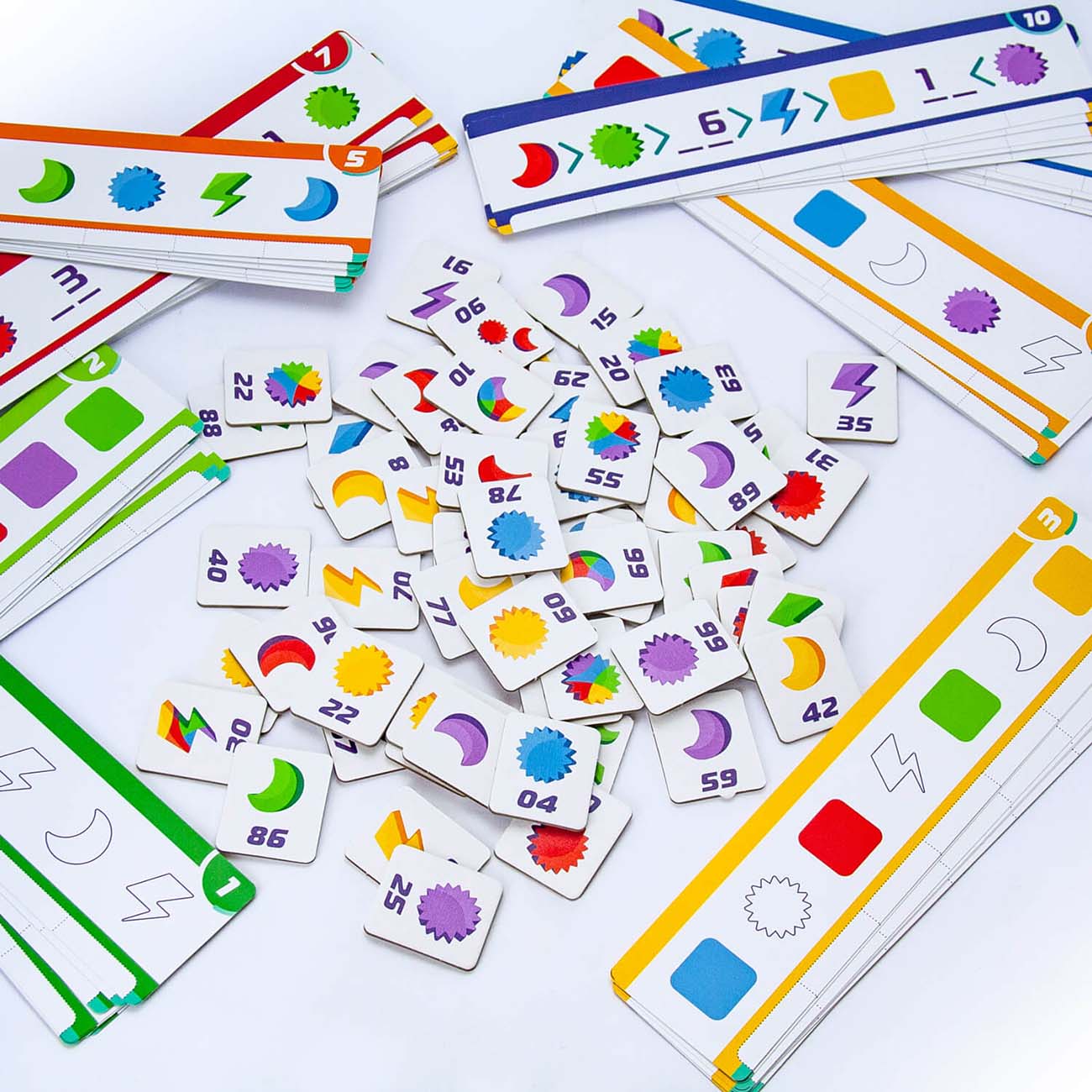 Нестандартная настолка предназначена для детей и взрослых, позволяя им вместе собраться за одним столом и продемонстрировать свои навыки. В каждом раунде игроки берут карточки заданий, разделённые на десять уровней, а в центр высыпают тайлы. Твоя задача – подобрать нужные фрагменты, чтобы первым заполнить табличку с условиями. Кто быстрее всех справится – переходит на новый уровень сложности в следующем раунде.