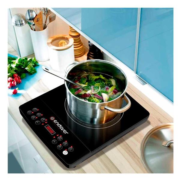 Настольная индукционная плита Endever Skyline IP-57 включает в себя стеклокерамическую варочную поверхность, на которой расположена одна конфорка диаметром 26 см. На передней части устройства — сенсорная панель управления и цифровой дисплей, на который выводится информация о включении, выбранной мощности и времени приготовления.
