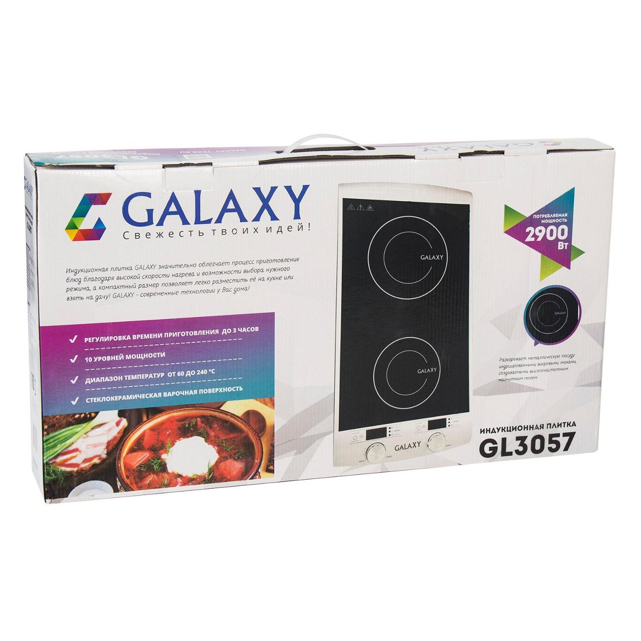 Настольная индукционная плита Galaxy GL3057 выполнена в современном дизайне, имеет стеклокерамическую, абсолютно гладкую поверхность с разметкой зон нагрева и панели управления. При помощи светодиодного дисплея можно контролировать время — от 1 до 180 минут и температуру нагрева в диапазоне от 60°С до 240°С.