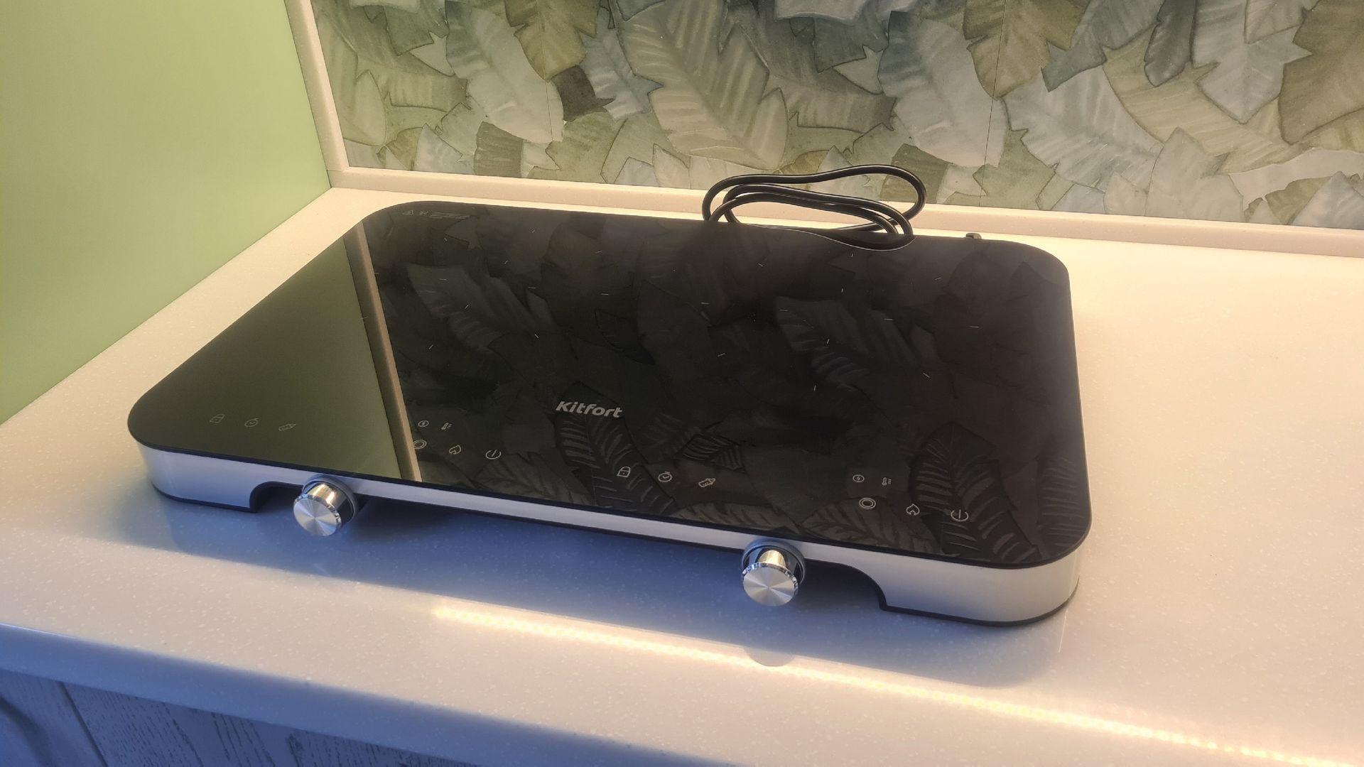 Стильный дизайн, совсем не дачный вариант). Отлично смотрится на кухне. Плита большая, помещаются одновременно кастрюля и сковорода или большая и маленькая кастрюли / сковороды. У меня нет в обиходе огромных емкостей поэтому мне комфортно все умещать. При этом плита все равно компактнее, чем встраиваемая. Конфорки работают автономно друг от друга, каждую можно отдельно включить или выключить. Для меня огромный плюс, что ее можно за ненадобностью просто убрать в шкаф и разместить под вытяжкой другую бытовую технику. Шумит она не громче вытяжки, приемлемо. Выключается, если убрать посуду во время готовки (ошибка Е0). Управление сенсорное, удобная регулировка мощности либо в Вт либо по температуре - легко разобраться, если почитать инструкцию. Есть таймер и блокировка сенсора, довольно удобно, но больше всего порадовало отсутствие встроенных программ жарки / каши / тушения и т.д. через прямую настройку мощности и температуры управление гораздо более гибкое. К покупке рекомендую