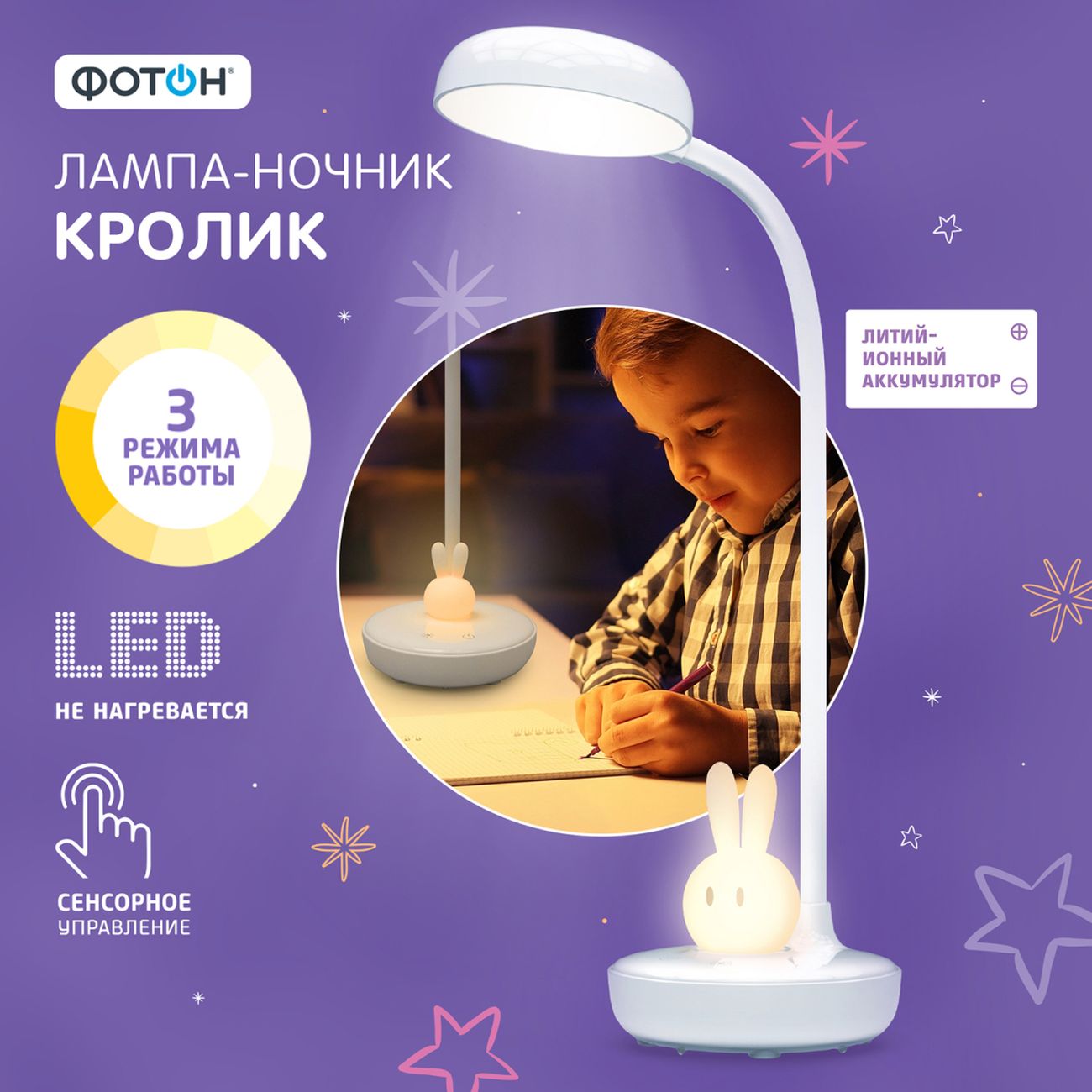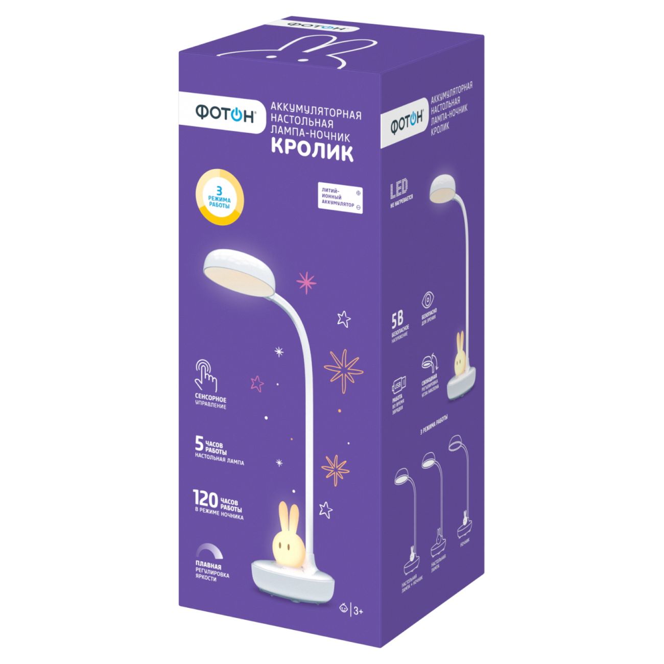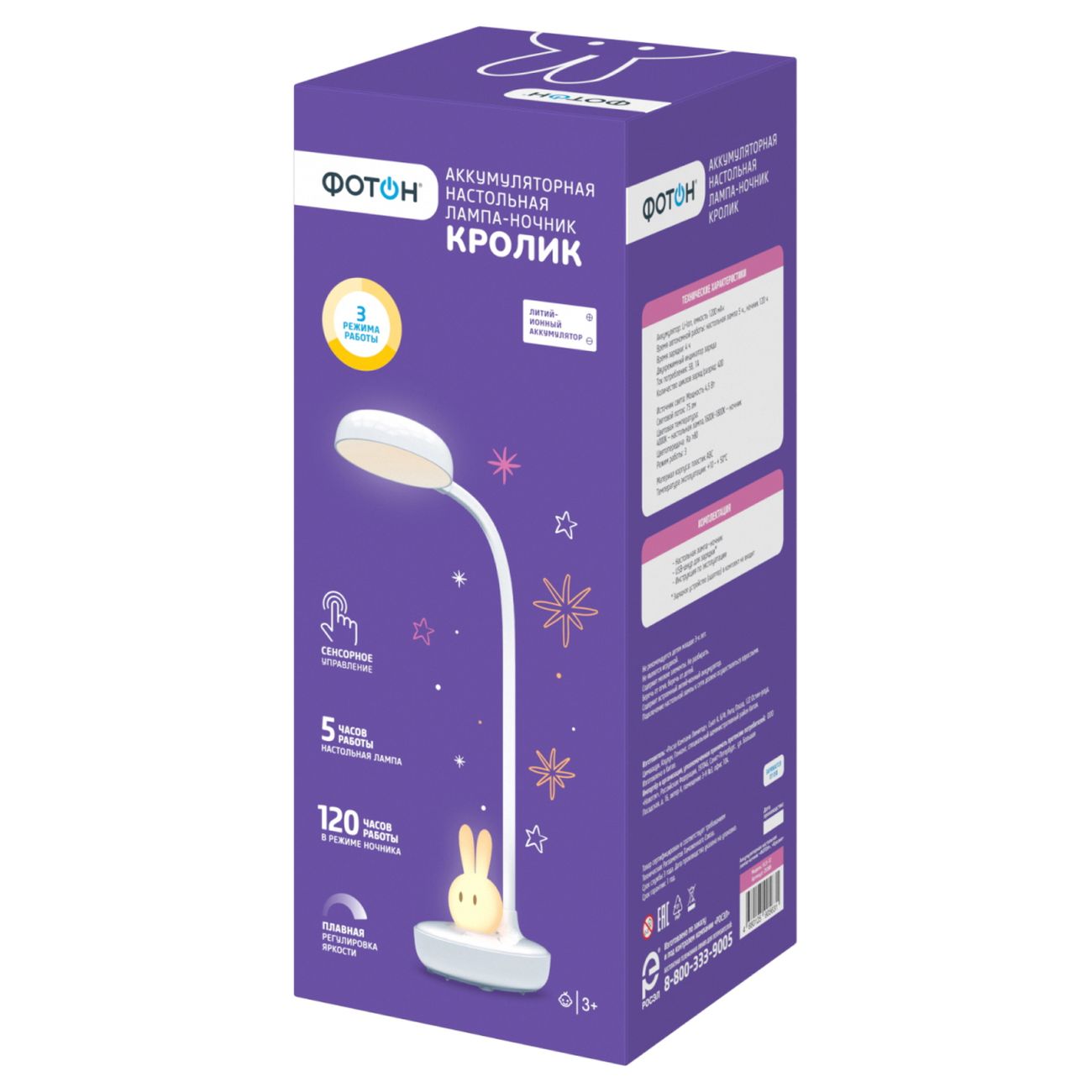 Многофункциональный светильник-ночник «Кролик» предназначен для создания уюта в детской комнате. Сенсорное управление и различные режимы освещения обеспечивают комфорт в любом режиме — будь то ночник, светильник или комбинированный режим. Мягкое освещение 1600-1800 K для ночника и яркий дневной свет 4000 K для настольной лампы создадут идеальную атмосферу. Гибкая ножка позволяет регулировать угол освещения, встроенный Li-ion аккумулятор емкостью 1200 мА*ч обеспечивает долгое время работы без подзарядки — до 5 часов в режиме настольной лампы и до 120 часов в режиме ночника. Зарядка через USB-провод (идет в комплекте) сделает использование еще более удобным. Гарантия на изделие составляет 1 год, что гарантирует высокое качество и надежность.