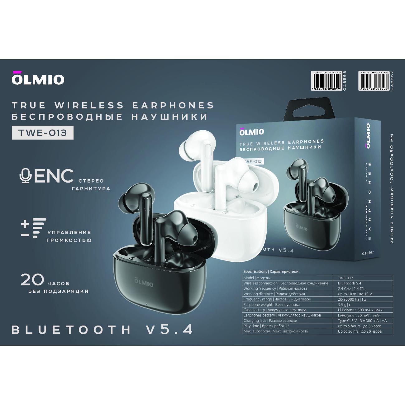 Вы можете купить Наушники беспроводные Olmio OLM-TWE-13-BLACK в магазинах М.Видео по доступной цене. Наушники беспроводные Olmio OLM-TWE-13-BLACK: подробное описание, фото и отзывы реальных покупателей, характеристики, возможность скачать инструкции и подобрать аксессуары.