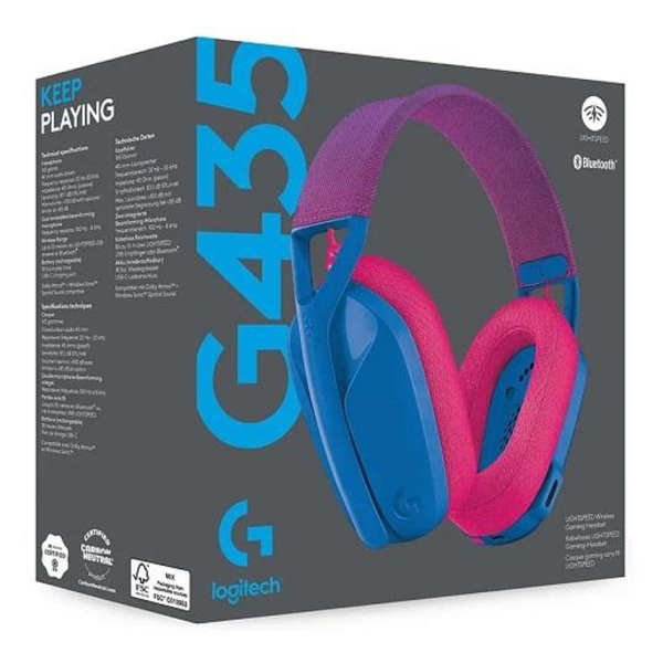 Игровые наушники Logitech G435 с беспроводным подключением оснащены модулем Bluetooth версии 5.0. Дальность сигнала в помещении составляет 10 м. Встроенный аккумулятор обеспечивает автономность в течение 18 часов, в режиме ожидания — до 30 часов. Для зарядки задействуется кабель с интерфейсом USB Type-C, входящий в комплектацию.