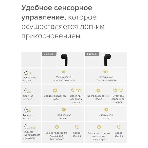Голосовые команды (сопровождение) на русском языке, которые оповещают о статусе подключения, сопряжения и питания наушников.