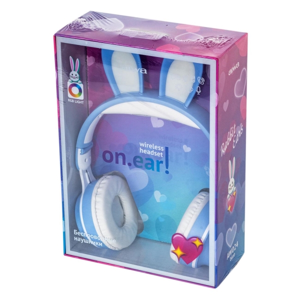 Наушники для детей Aiwa AW024 голубого цвета закрытого типа функционируют от своего аккумулятора. В режиме ожидания устройство весом 0,4 кг может работать до 12 часов, затем потребуется подзарядка через USB-порт при помощи кабеля, который поставляется в наборе. Накладная модель с регулируемым оголовьем действует в частотном диапазоне 20-20000 Гц, поэтому верхние и нижние ноты хорошо проработаны.