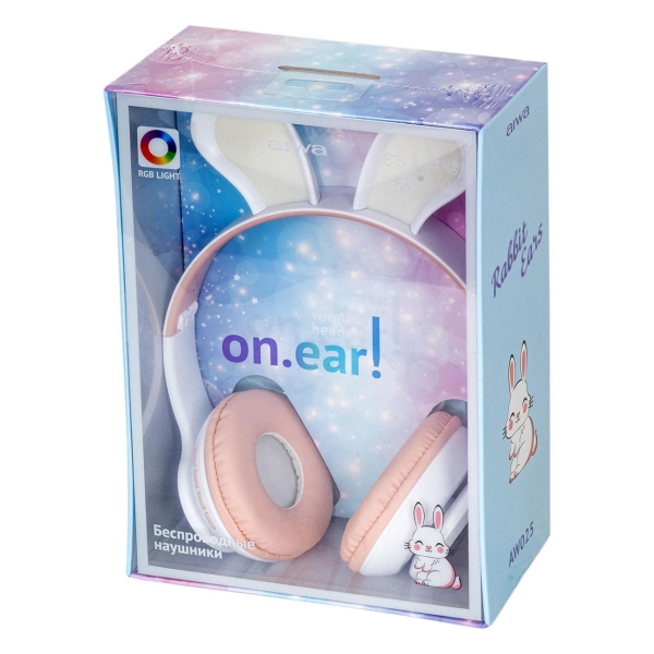 Наушники для детей Aiwa AW025 светло-розового цвета весом 0,38 кг функционируют от своего аккумулятора. В режиме ожидания модель с регулируемым оголовьем может работать до 7 часов. На корпусе располагается USB-порт, через который устройство можно подсоединять к внешним носителям для восстановления заряда. В наборе идет соответствующий кабель для подключения.