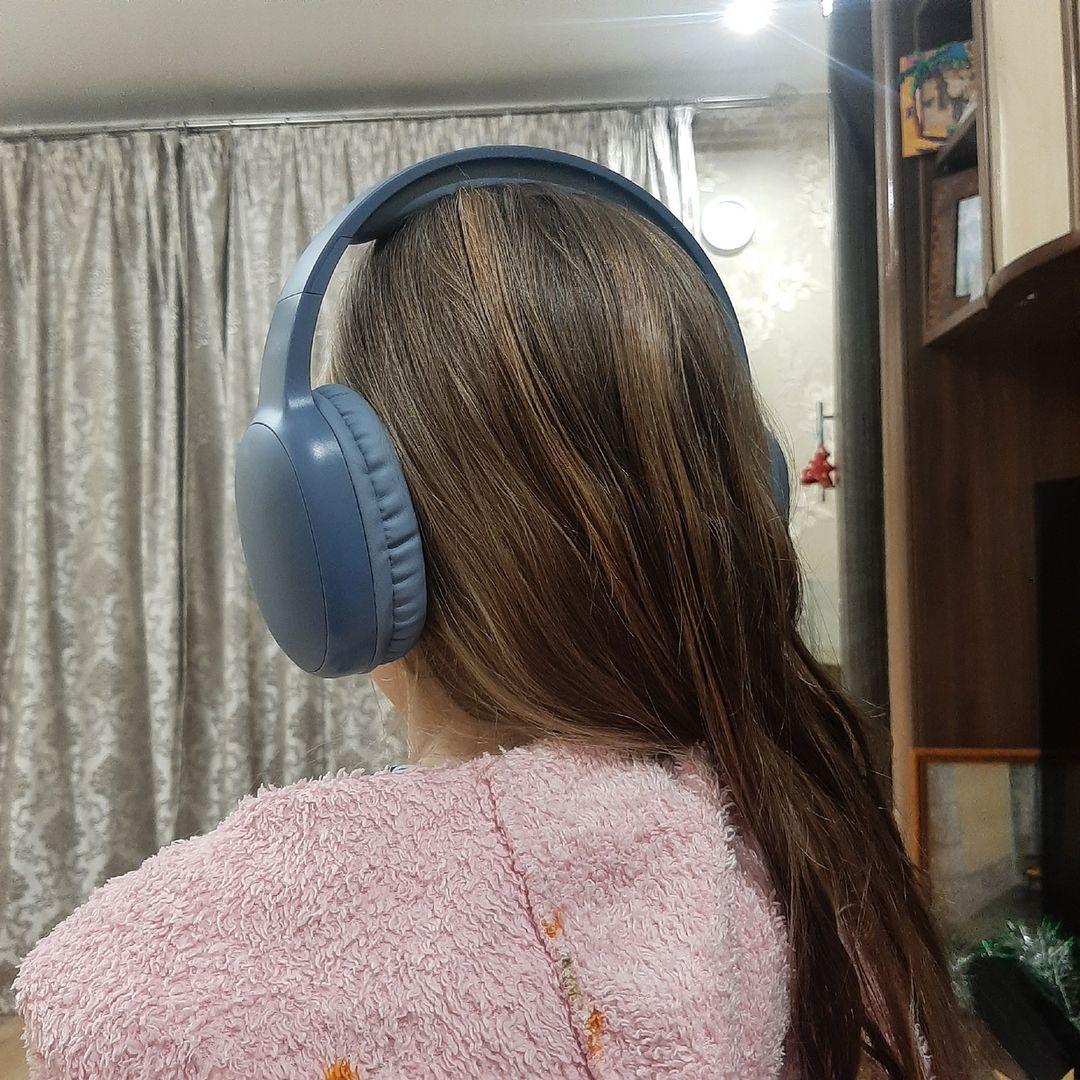 Удобные наушники, хорошо сидят на голове. Оголовье с мягким вкладышем, сами наушники регулируются. Голова не устаёт, не давит на голову. По весу не ощущаются. Складываются компактно и их удобно хранить в таком виде. В комплекте нет чехла для хранения, но при такой цене за них, это простительно. Достаточно хороший и качественный звук. Для игр, прослушивания музыки вполне подходят. Проверяли через подключение к телефону по блютуз, слышимость при звонке хорошая, встроенный микрофон справляется, даже в зале магазина при среднем шуме. При подключении проводном, звук чуть почище. Цвет приглушённый синий оттенок, довольно приятный глазу.