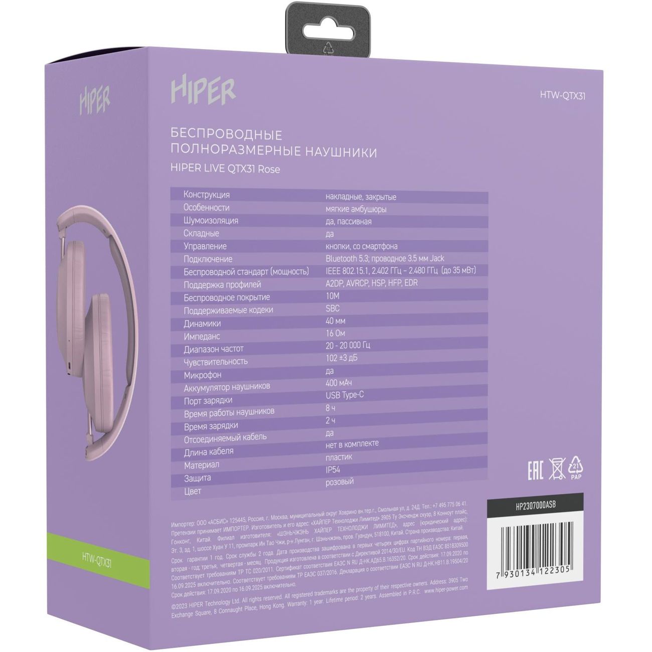 Вы можете купить Наушники накладные Bluetooth HIPER LIVE HTW-QTX31 Rose в магазинах М.Видео по доступной цене. Наушники накладные Bluetooth HIPER LIVE HTW-QTX31 Rose: подробное описание, фото и отзывы реальных покупателей, характеристики, возможность скачать инструкции и подобрать аксессуары.