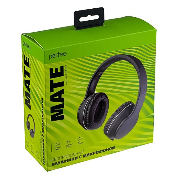 Perfeo Mate — полноразмерные наушники в корпусе черного цвета, обладают складной конструкцией, мягким регулируемым оголовьем и амбушюрами из искусственной кожи. Устройство весит всего 200 г.