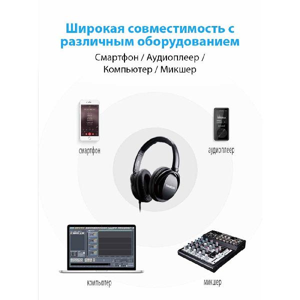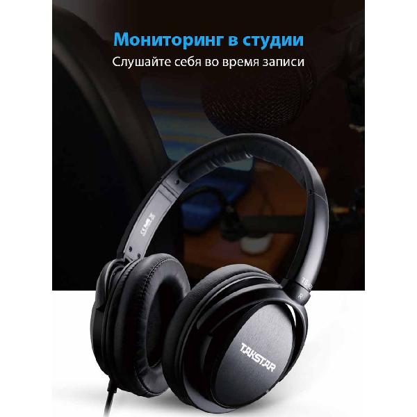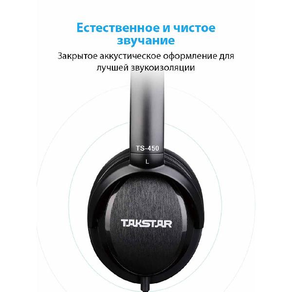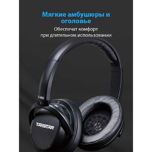 Накладные наушники Takstar TS-450 закрытого типа оснащены раздвижным оголовьем, позволяющим подобрать комфортный обхват. Амбушюры покрыты мягкой экокожей, плотно прилегают к ушным раковинам, не пропускают посторонние звуки. Устройство подключают к компьютеру или телефону с помощью кабеля с разъемом Jack 3.5. Длина составляет 1,6 м. Шнур сделан из бескислородной меди.