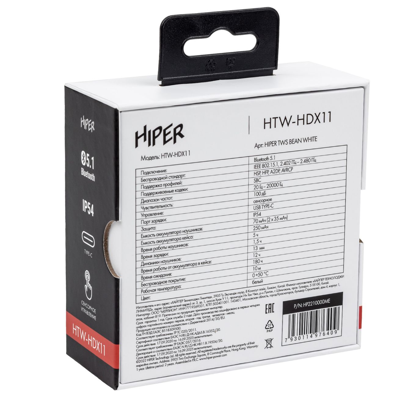 Гарнитура Hiper HTW-HDX11 — беспроводная модель закрытого типа, которую подключают к смартфону, планшету или плееру через Bluetooth. Связь отличается устойчивостью в радиусе 10 м. Чувствительность составляет 100 дБ. Сопротивление — 32 Ом. Устройство обеспечивает регулировку громкости воспроизведения, переключения или остановки музыкальных треков.