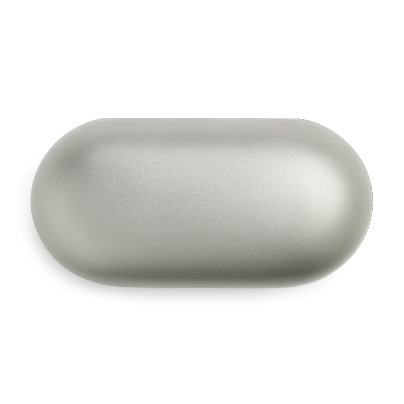 Футляр оснащен магнитной крышкой и батареей емкостью 850 мА*ч. В комплект входят дополнительные амбушюры, USB-кабель, зарядный чехол.