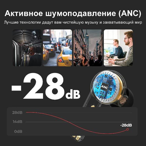 Активное шумоподавление позволяет с комфортом слушать музыкальные композиции и общаться по сотовой связи в городских условиях. Амбушюры выполнены из силикона, корпус (класс водонепроницаемости соответствует IPX8) — из пластика. Емкость аккумулятора равна 500 мА*ч, тип — литий-ионный. Время работы в активном режиме достигает 30 часов.