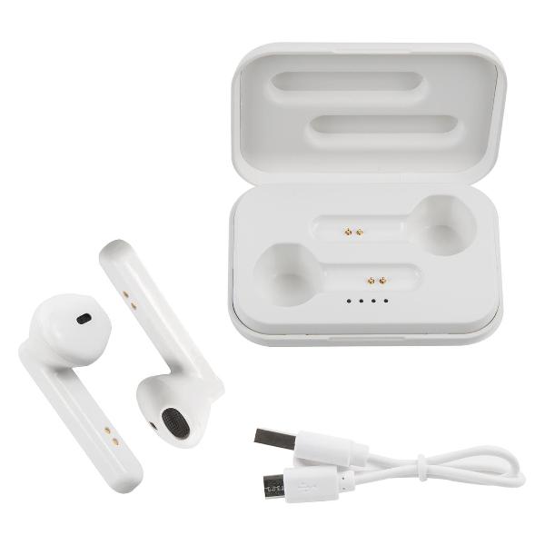 Использование в рамках гарнитуры возможно благодаря встроенному микрофону. Присутствует управление воспроизведением. Аккумулятор типа Li-Ion емкостью 250 мА*ч заряжается от USB, период времени в режиме ожидания — 8 ч. Пластиковый корпус выполнен в белом цвете. В комплектации идет кабель microUSB. Общая масса составляет 39 г.