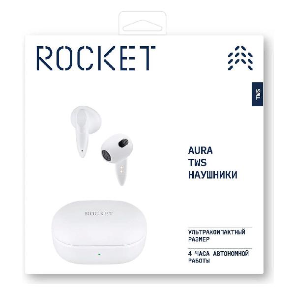TWS наушники Rocket Aura (RTW502WH01AR-BD), цвет белый в кейсе с функцией зарядки автоматически подключаются к источникам звука посредством беспроводной связи Bluetooth 5.0, обеспечивающей надежный контакт в диапазоне до 10 м. Вкладыши анатомической формы со сменными силиконовыми амбушюрами надежно фиксируются в ушной раковине, поддерживая высокий уровень звукоизоляции, но не перекрывая полностью внешние шумы. Каждый наушник работает автономно, для чего оснащен всенаправленным микрофоном, аккумулятором и сенсорными кнопками для регулировки силы звука, переключения и поиска треков, постановки на паузу, дистанционного приема и осуществления звонков.
