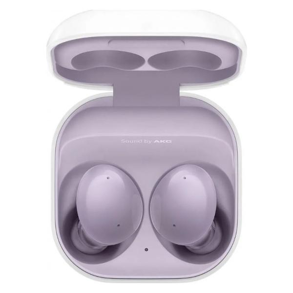 Наушники True Wireless Samsung Galaxy Buds 2 Violet внутриканального типа отличаются небольшими размером и весом, который составляет 0,24 г. В комплект входят две пары амбушюр из силикона разного размера. Подзарядка осуществляется при помощи пластикового чехла и кабеля питания типа USB 2.0.