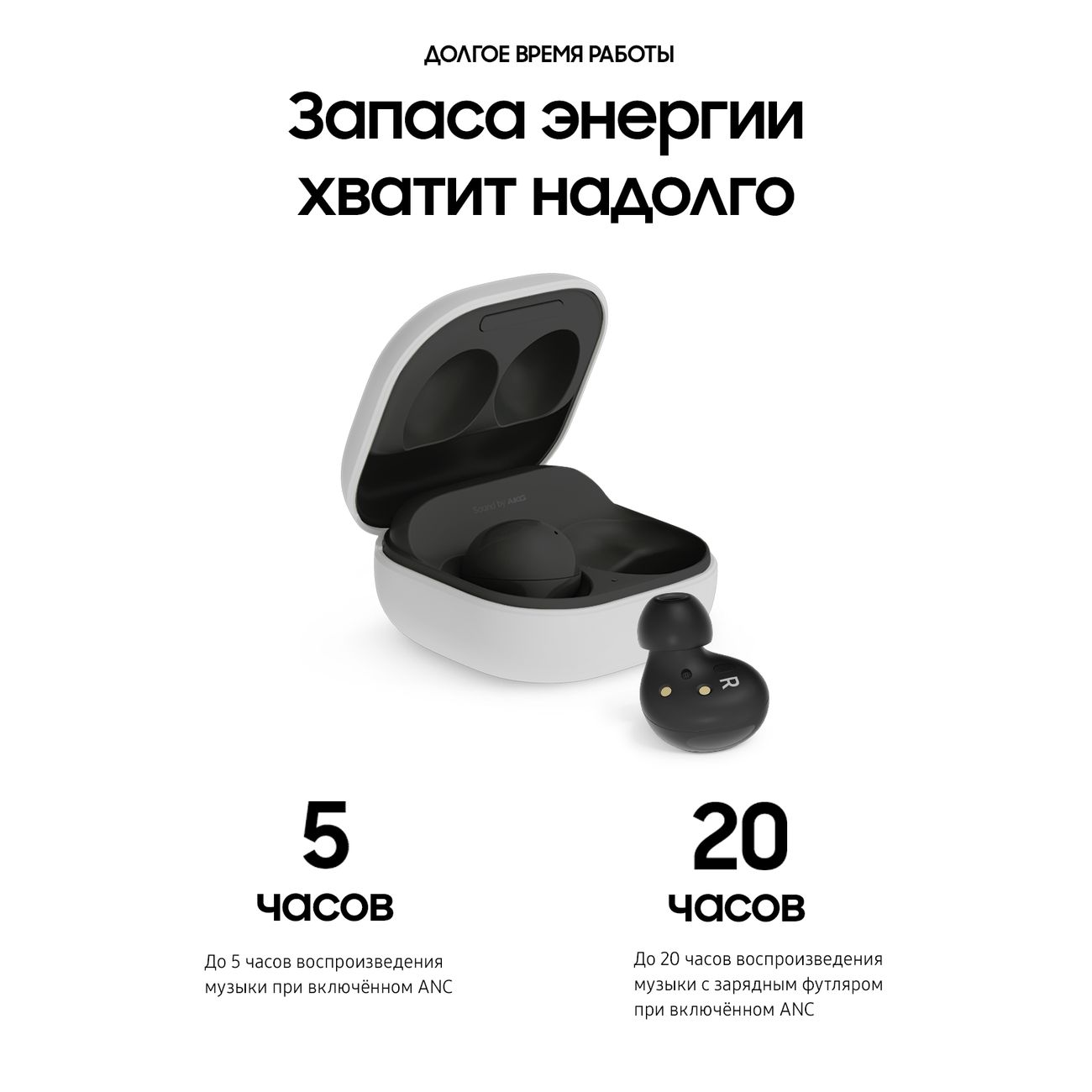 Ёмкий аккумулятор не позволит остаться без связи и любимого контента. Автономность гарнитуры достигает полных пяти часов, а зарядный кейс увеличивает это время практически до 30 часов.