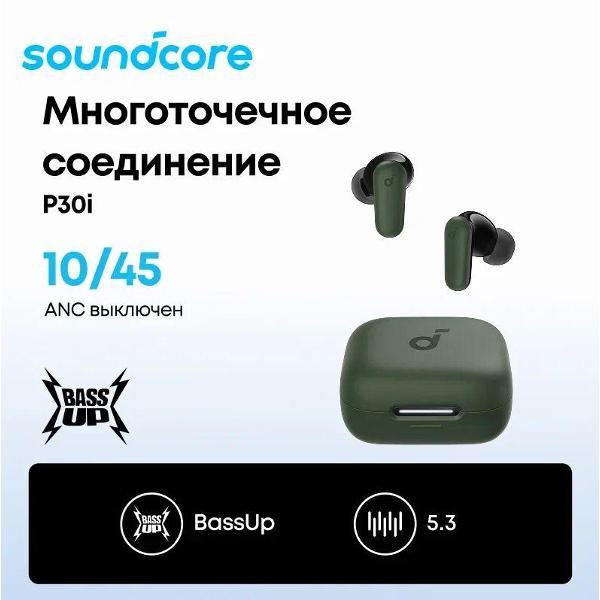 Наушники True Wireless Soundcore P30i зеленые позволяют наслаждаться объемным 3D-звуком и мощными басами, обеспечивая при этом интеллектуальную изоляцию от внешнего шума до 42 дБ.