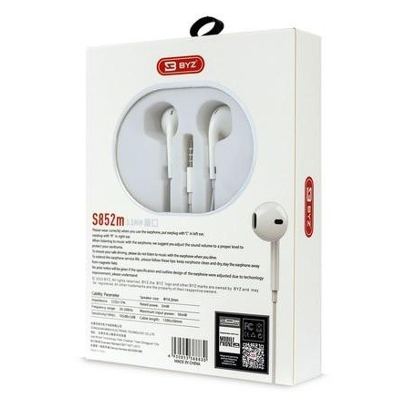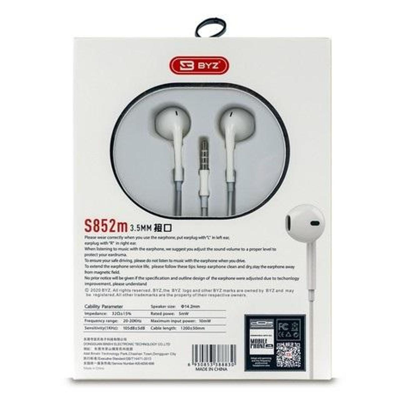 Наушники-вкладыши BYZ S852m представляют собой классическую проводную гарнитуру в белом исполнении для прослушивания музыки и звонков. Модель оснащена стандартным штекером 3.5 мм, что обеспечивает стабильную совместимость с большинством смартфонов, плееров и ноутбуков.